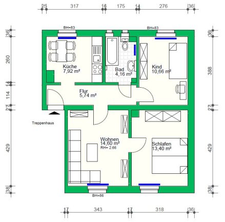 - Zusätzliche Merkmale: Tageslichtbad, Ww über Fernwärme, Treppenhausreinigung durch Servicepartner